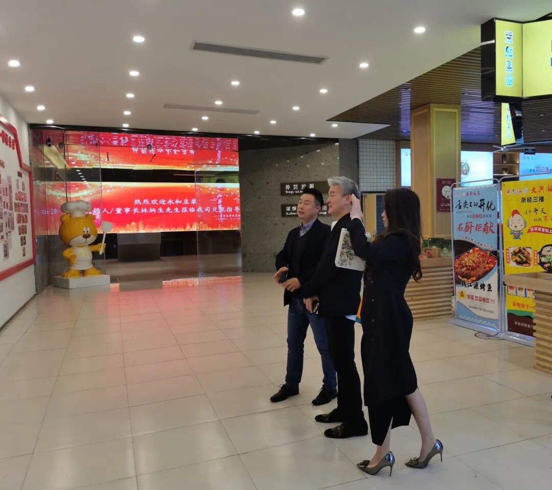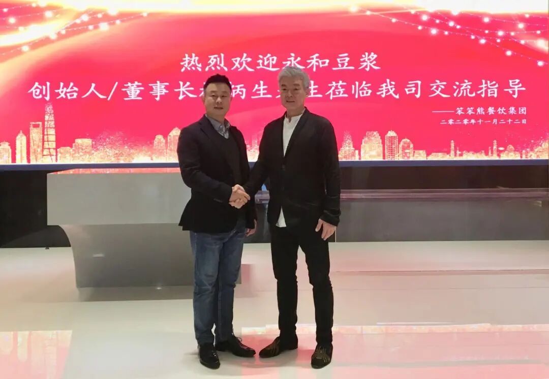 2020年11月22日,永和豆浆创始人/董事长林炳生先生及秘书长袁总莅临我司总部参观交流。公司董事长周宝富先生对林董和袁总的到来表示热烈欢迎,并安排了细致的接待工作。在董事长周宝富先生的陪同下,来宾参观了笨笨熊集团总部及经营服务的餐厅。