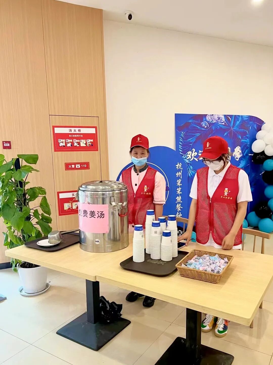 浙经院笨笨熊餐厅为前来报道的新同学和陪同家长们准备了清凉解暑的绿豆汤,让大家缓解一路的疲累,感受到笨笨熊大家庭的温暖。