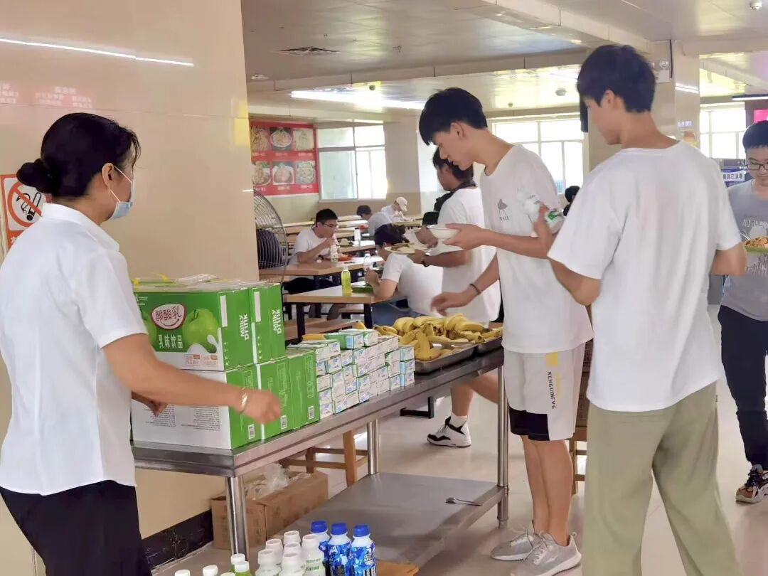 一粥一饭总关情,一言一行见初心。淮北师范大学项目部在迎新期间,充分保证食品安全及卫生,准备了丰盛的菜品,并给前来用餐的同学们免费赠送各类水果、牛奶、果汁,绿豆汤......为新同学营造温暖舒适的氛围,提供温馨安全的餐饮服务,圆满完成此次餐厅迎新保障工作。