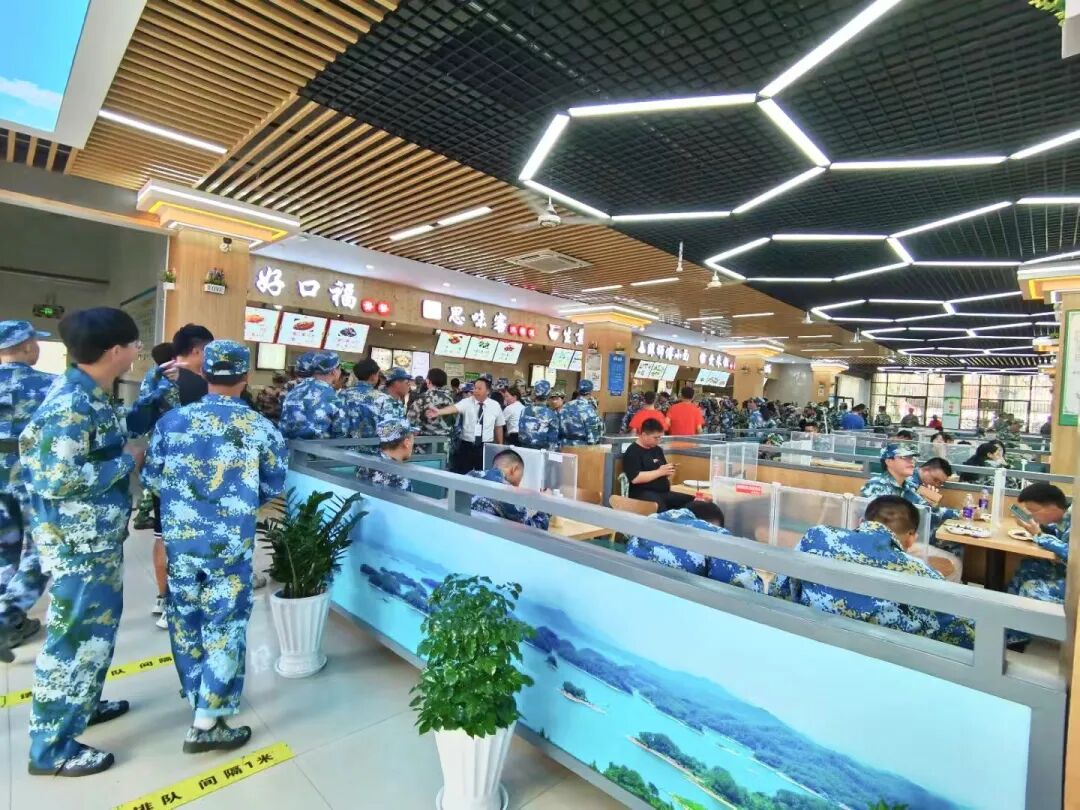 同学们离家赴远方求学思乡怎么办?军训体力消耗太大怎么办?浙江交通职业技术学院笨笨熊餐厅的各式美食,一定能让来自五湖四海的同学们品尝到家的味道,餐厅阿姨的每一勺都是消愁的佳肴;军训期间,在膳食的搭配上,根据新生军训期间体力消耗大的特点,合理科学的安排食谱,尽可能多的提供能迅速补充营养、易吸收的食品;同时,设置餐厅经理迎新咨询处,方便新生及时了解各项就餐服务、提出意见建议......这些点点滴滴,都为全校师生了提供温馨、舒适、安全的餐饮服务,圆满完成此次迎新后勤保障工作。