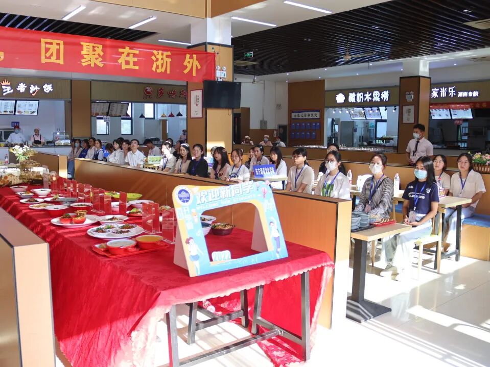 餐厅为同学们准备了餐厅招牌菜品、甜点糕点、迎新蛋糕等丰富多样的美食,邀请学校领导及新生代表共同参与此次迎新聚餐活动,一同感受美味浙外。这也将成为同学们踏入大学校园的初体验,愿他们以此为起点,追求卓越,扬帆起航。